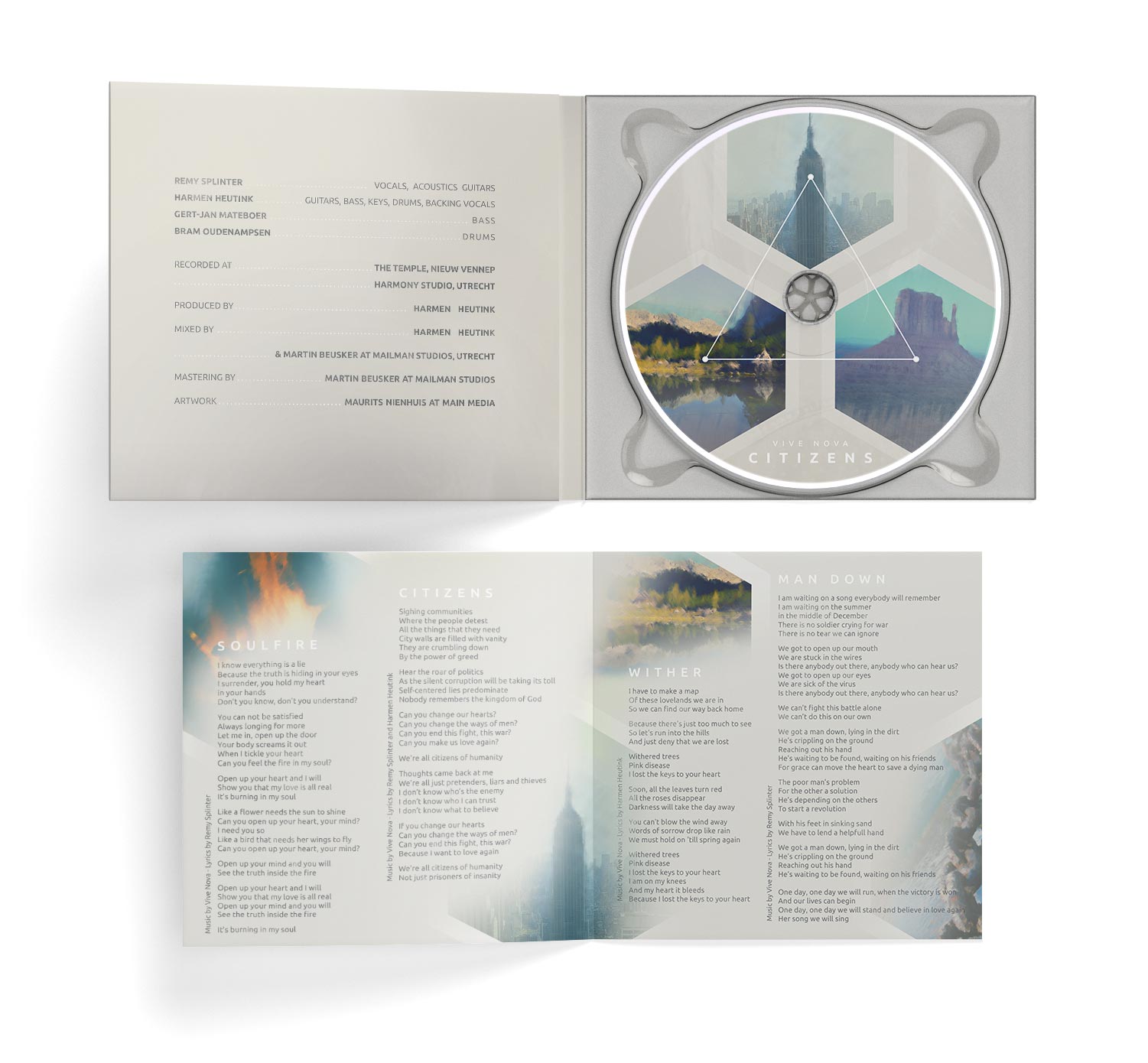 The gents in the band Vive Nova reached out to me right before they entered the studio to record their EP “Citizens”. This would be their first work and it required artwork for the digital and physical release.